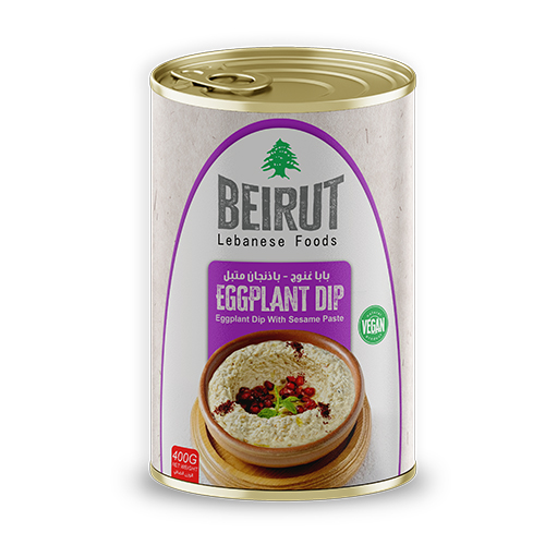 Smoky Eggplant dip with Lebanese Tahina. Enjoyed as is or with additional seasoning. available in all 3 sizes 185g-6.5oz, 400g-14oz, and 850g-13oz